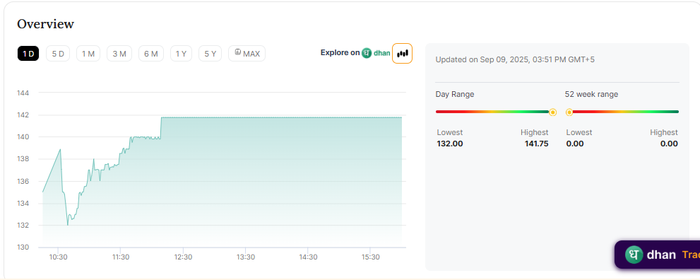 The stock’s performance on debut was in line with market expectations, as indicated by the Grey Market Premium (GMP) of ₹9 per share before listing. The strong opening reflects investor optimism and trust in the company’s prospects.