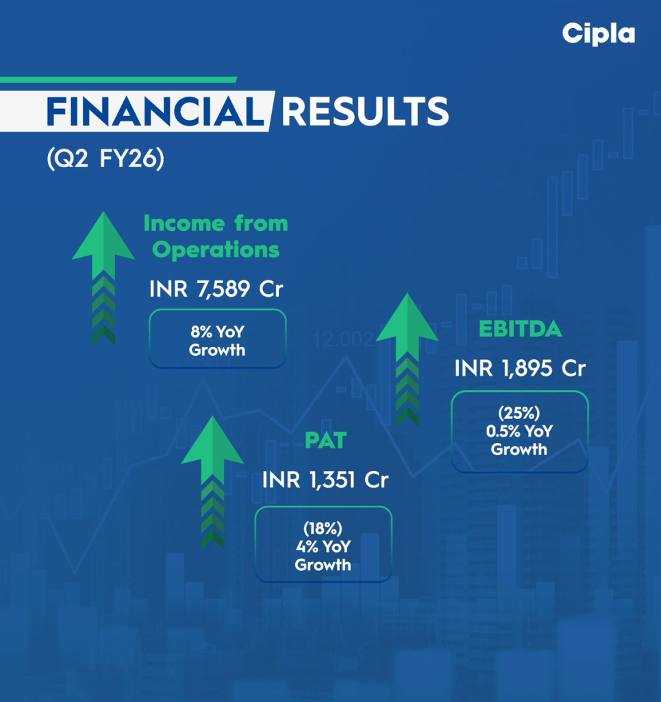 Cipla’s Q2 FY26 results on October 30, 2025, showed higher profit and revenue. Analysts see stable performance, but some advise waiting for better entry points.
