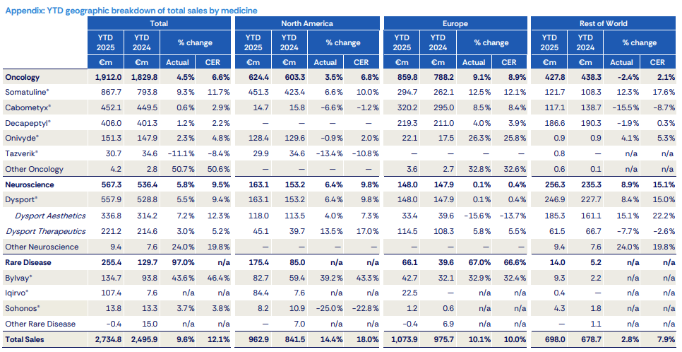 Ipsen’s Q3 2025 results were boosted by solid sales of Somatuline, growth in rare disease treatments, and higher revenue from oncology and neuroscience products.