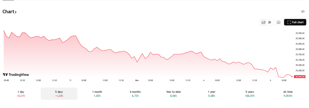 After November 6, 2025, Nifty 50 may stay steady but face small swings as traders watch global cues, company results, and foreign investor activity for direction.