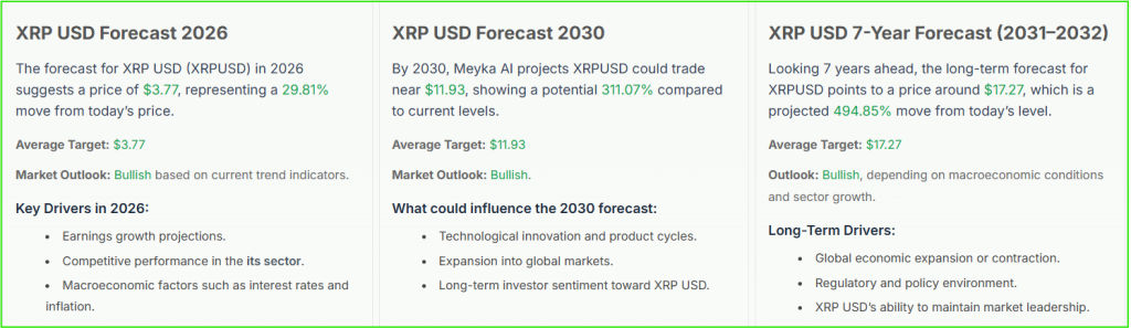 Meyka AI XRP USD FORECAST 2026, 2030, 2031-2032, reaching an average target of $17.27