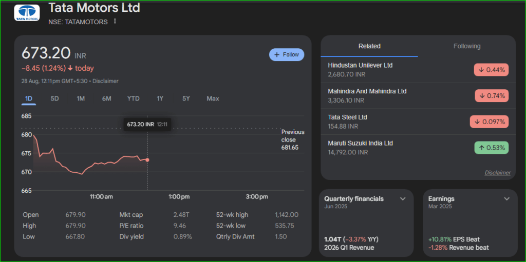 • Earnings pressure: Tata Motors reported large profit declines recently, showing real pressure on earnings and margins across the group. Consolidated quarterly profits and EBITDA have weakened, which is why analysts trimmed targets and raised caution.