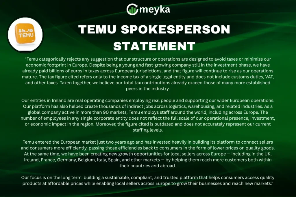 Also, a recent statement from Temu’s Spokesperson elaborating on the company’s current employment structure and finance: